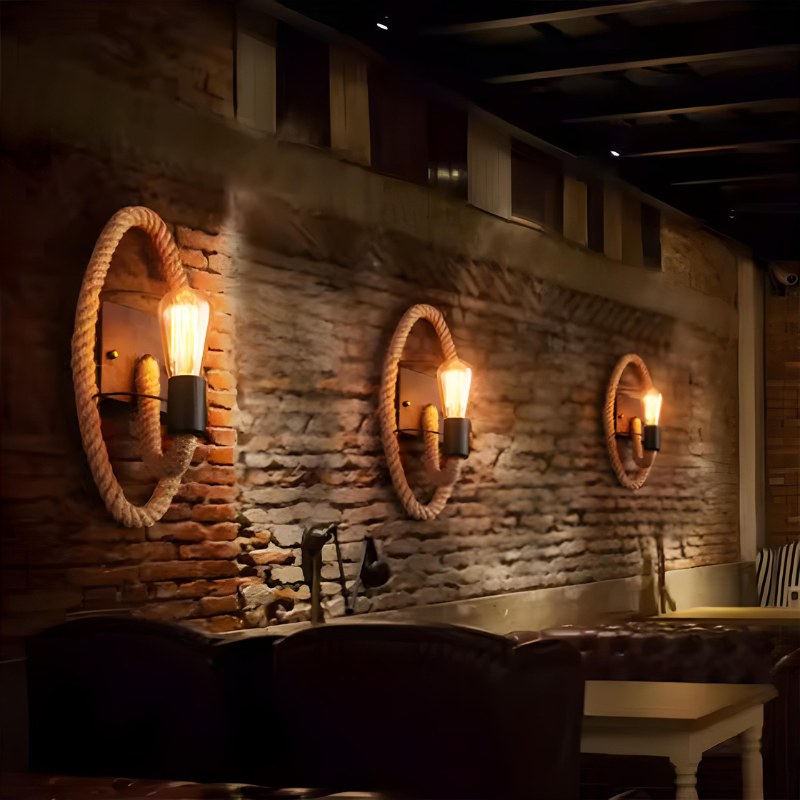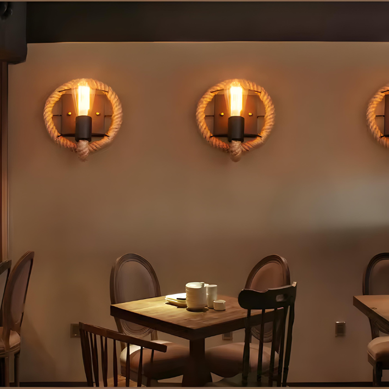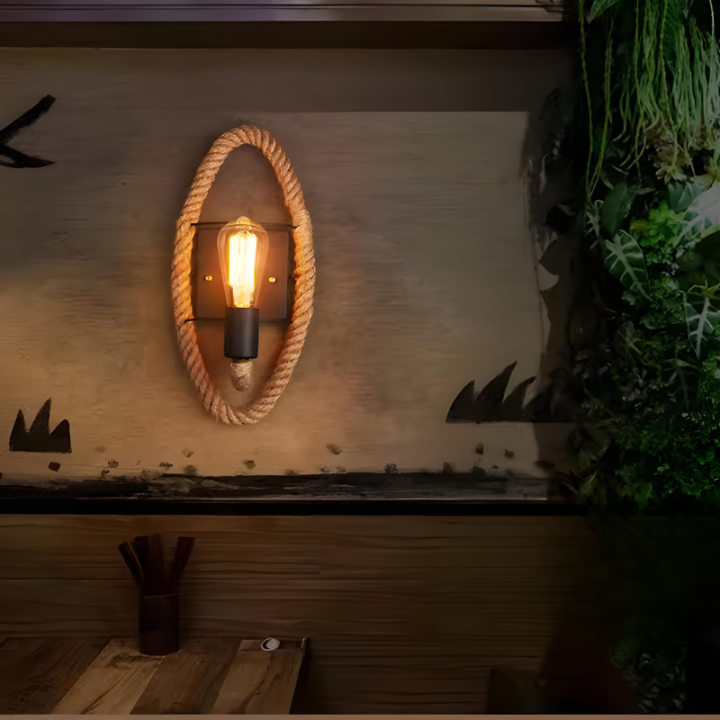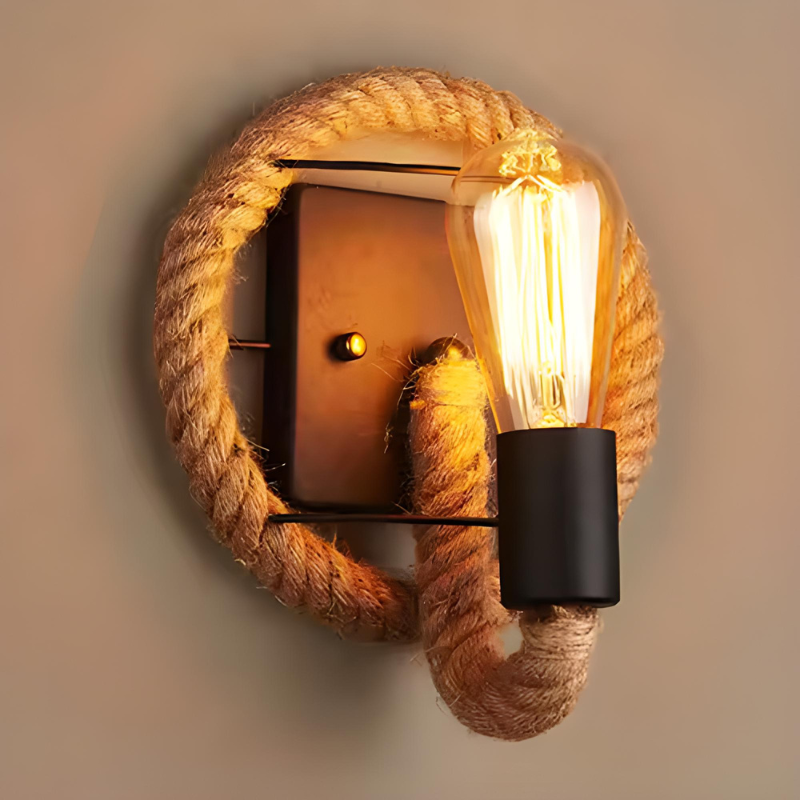 Applique Murale Industrielle Vintage en Corde de Chanvre